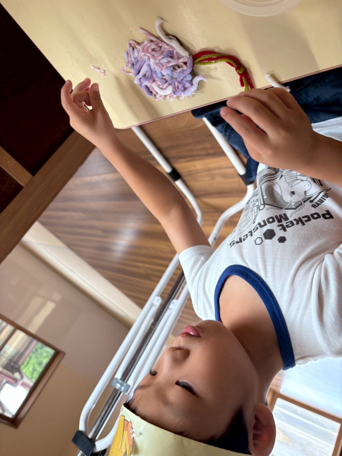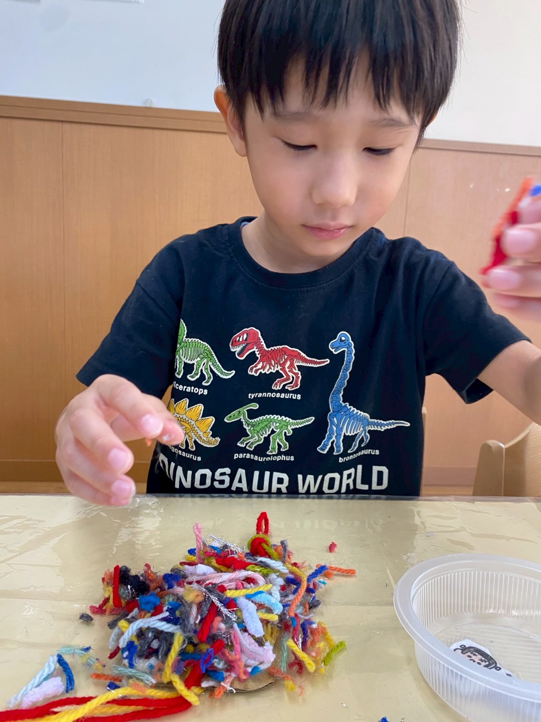 毛糸やハロウィンイラストを貼り付けて、プレゼントするハロウィン飾りを作りました。