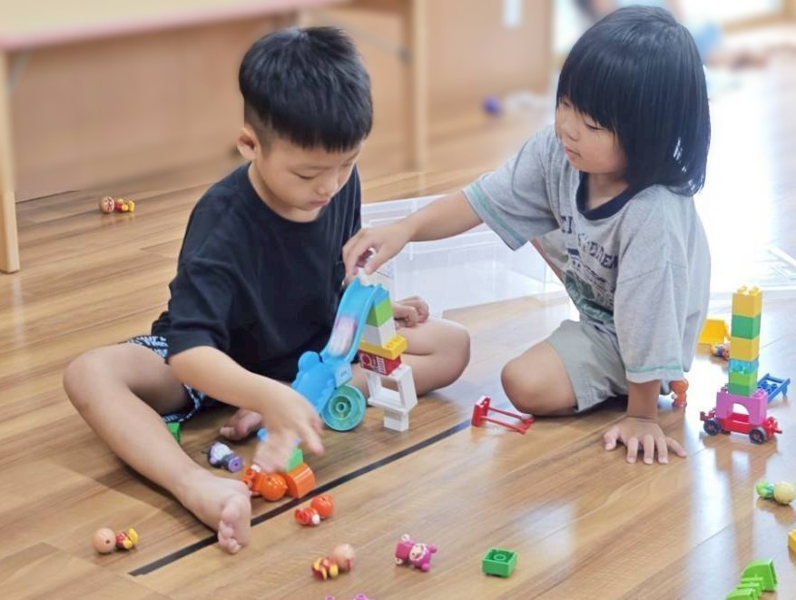 遊びの中でのトラブルは、伝え方やルールの確認を職員と一緒に行います。