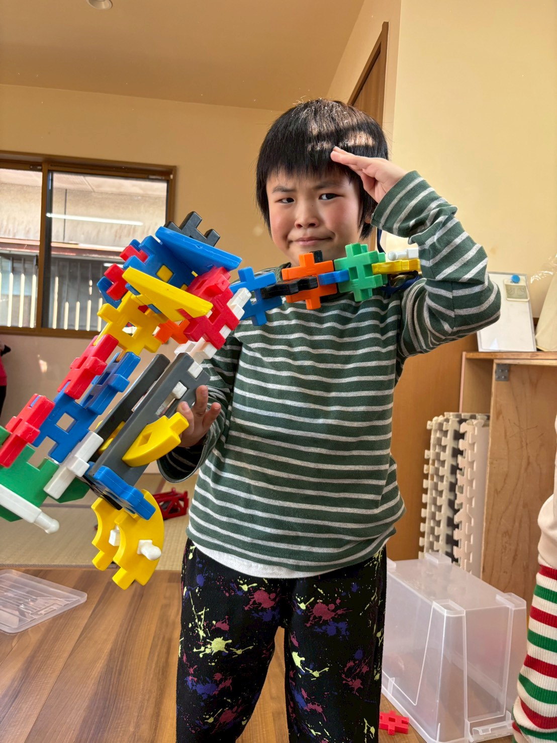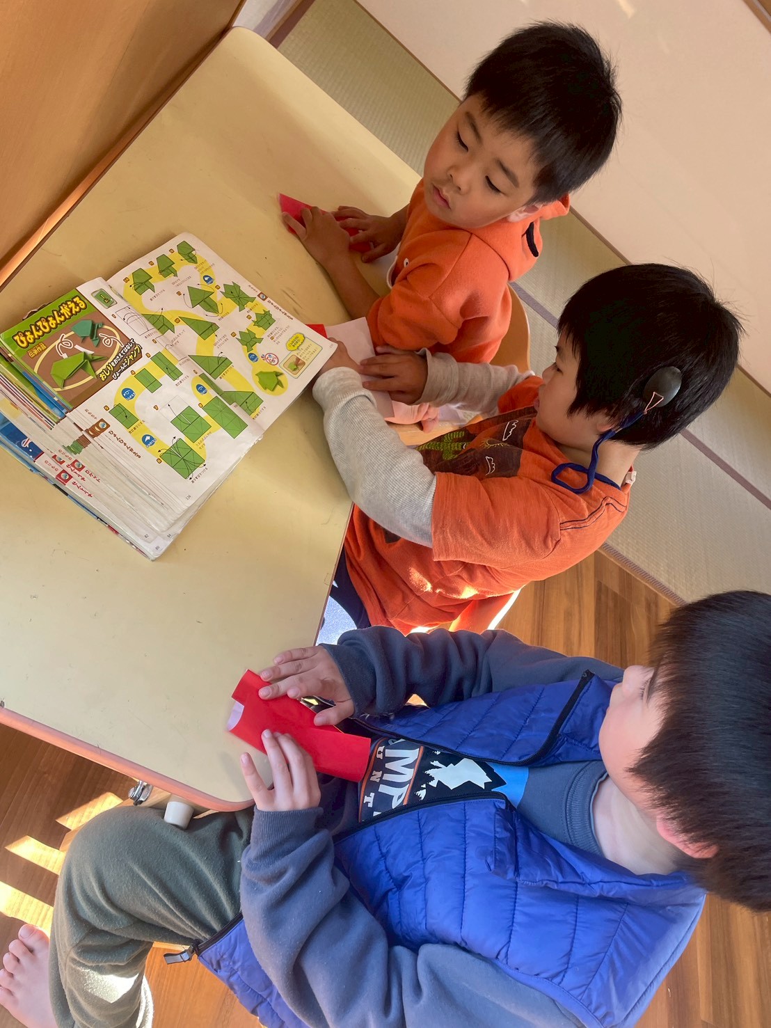 折り紙遊びやブロック遊びをおこなう姿もあります。