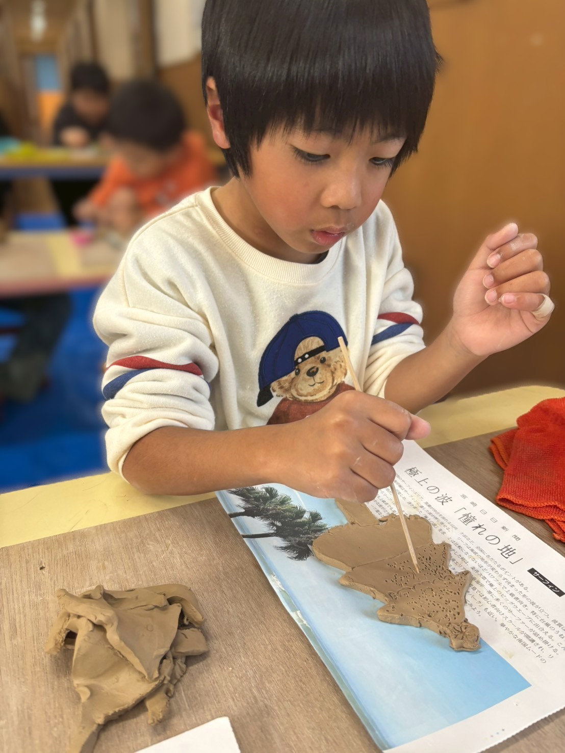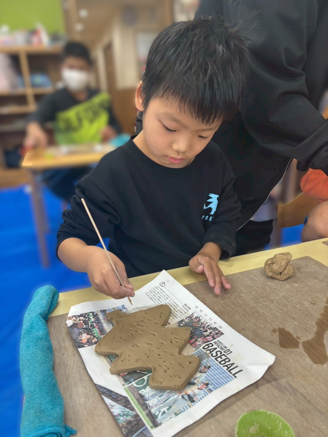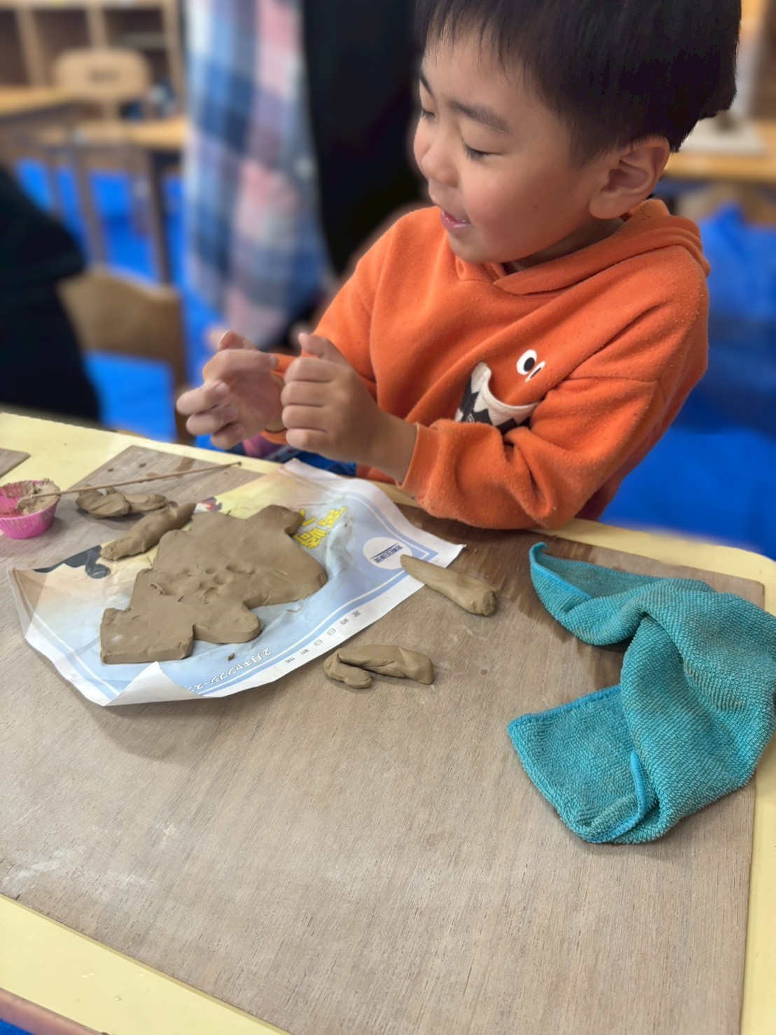 竹串を使って型取ったり、余った粘土で飾りをつくったりして
