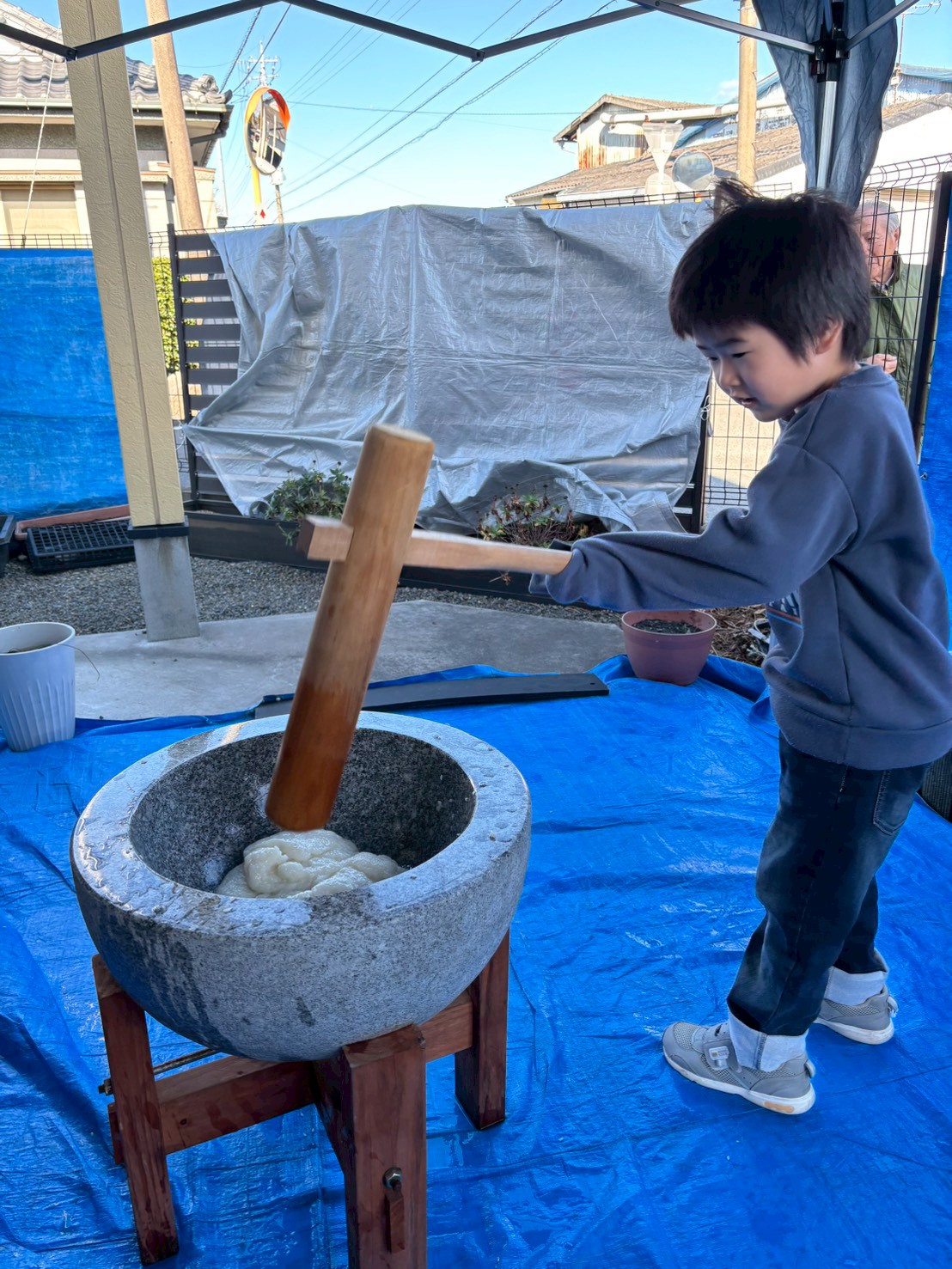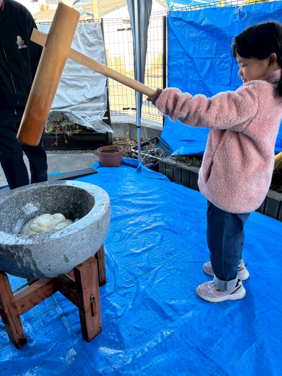餅つき大会では、重い杵を振り下ろしお餅をつくことができました。